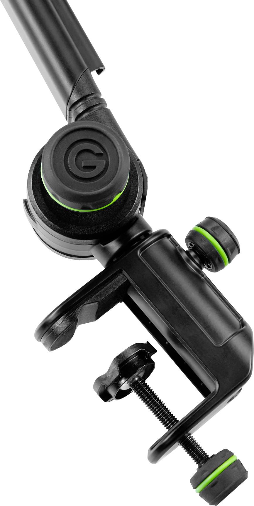 Nosač stolnog mikrofona može se dovesti u bilo koji željeni položaj preko tri zgloba. Gravity® je također smislio posebnu značajku za uređaj za držač mikrofona: nakon što je mikrofon sa stezaljkom ili paukom pričvršćen, možete jednom rukom izvući cijeli držač mikrofona i okrenuti ga u koracima od 90 °. Snimka se zatim automatski vraća na svoje mjesto. Zašto je to tako posebno?