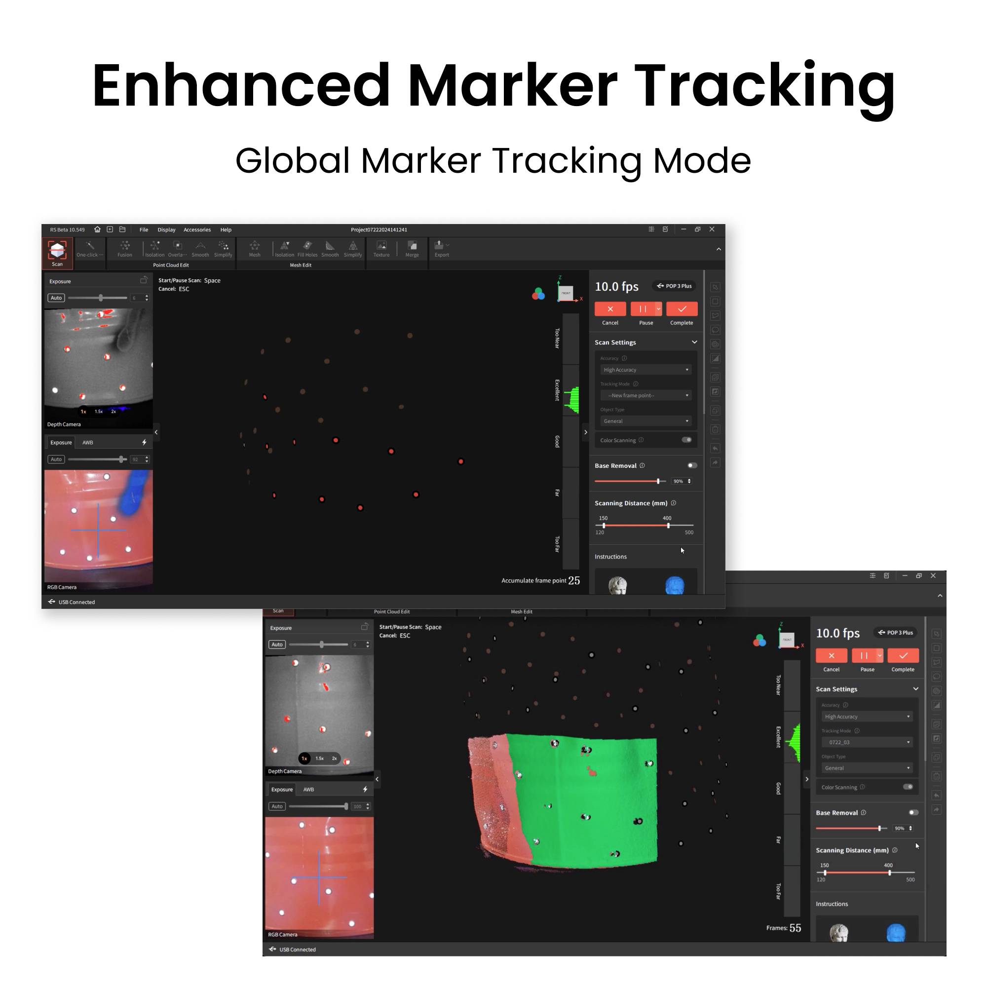 Novi način praćenja globalne referentne točke uvelike poboljšava hvatanje referentne točke i povećava točnost spajanja točaka i volumetrijsku točnost.