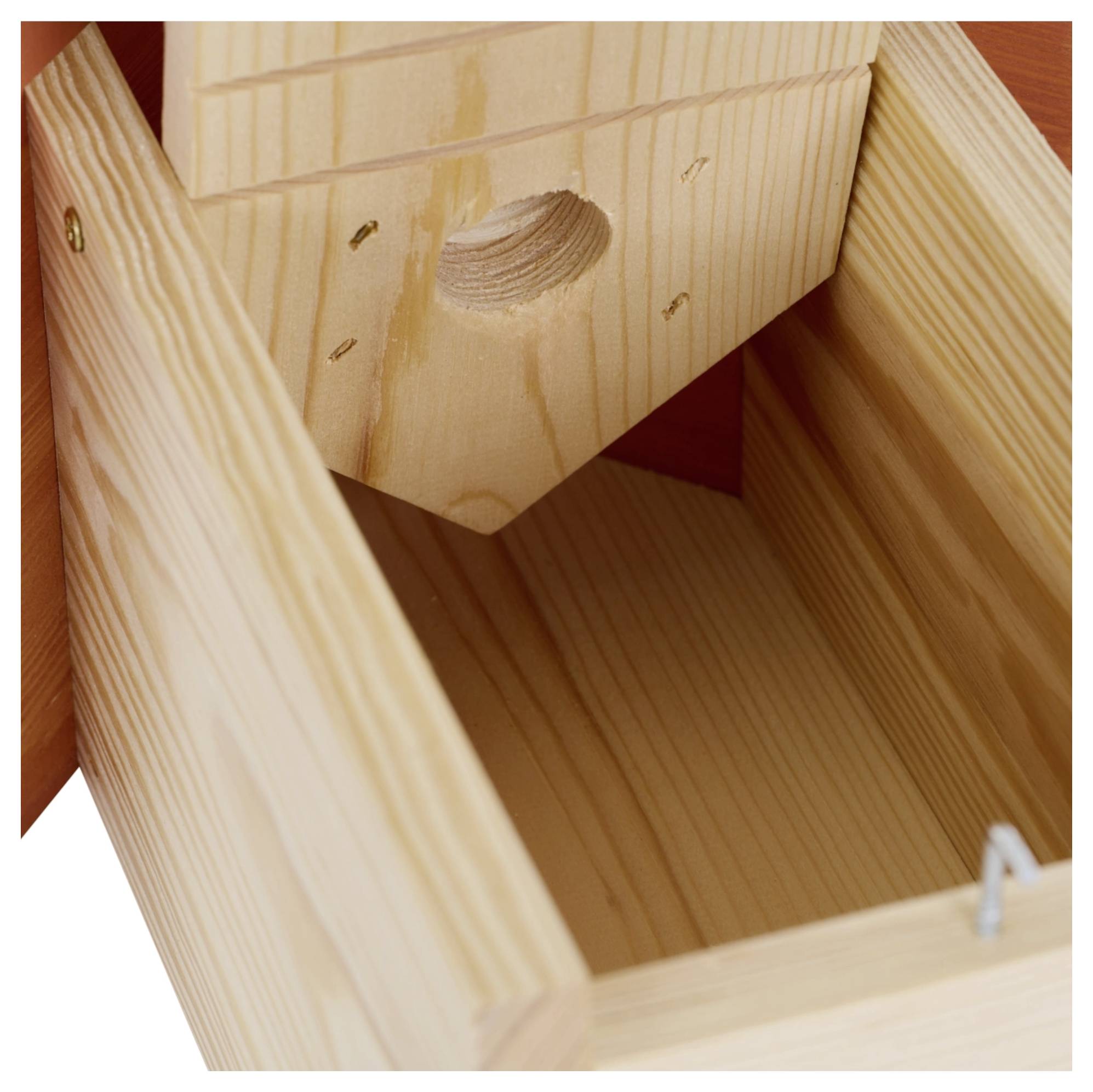 Borovo drvo je posebno izdržljivo i robusno. Prekrasan izgled drva čini kućicu za ptice pravim magnetom za poglede.